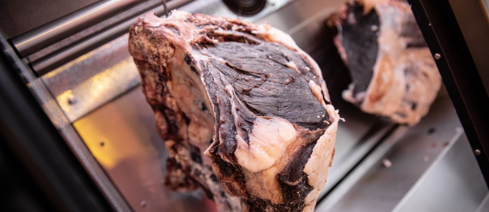 Het vlees van onze Maas Rijn IJssel runderen wordt in onze speciale kasten gerijpt. Na minimaal 5 weken rijpen heeft u een bijzonder smakelijk stuk vlees.